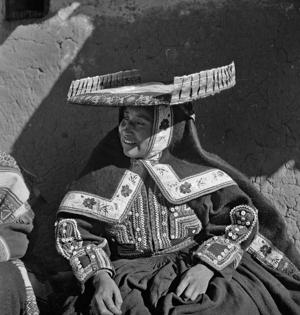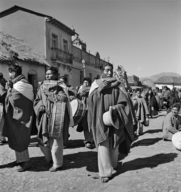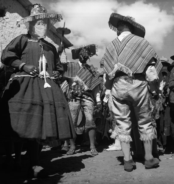 Published in 1945, Fiestas y Danzas situates Verger’s images of Andean fiestas within discourses and cultural politics of indigenismo, a modernist movement during the late-19th and 20th centuries intent on elevating marginalized “indigenous” peoples—the different groups of Quechua- and Aymara-speaking rural farmers and pastoralists—as the heart of progress and culture in the Andes. The equitable application of the movement’s ambitions was, however, constrained by entrenched attitudes and a racial hierarchy inherited from the colonial era. A key proponent of indigenismo, Peruvian historian Luis E. Valcárcel (1891–1987) wrote introductions to Fiestas y Danzas and Indians of Peru (1950), Verger’s subsequent book of photography. In Fiestas y Danzas, Valcárcel wrote: